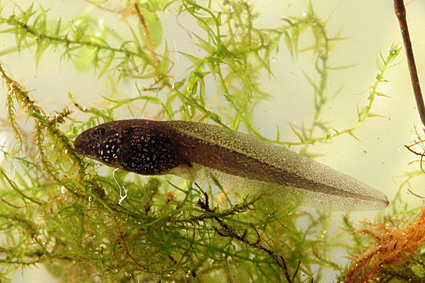 Left , Frog Rana temporaria © Allan Parker ARPS and right , tadpole © Derek Bateson.