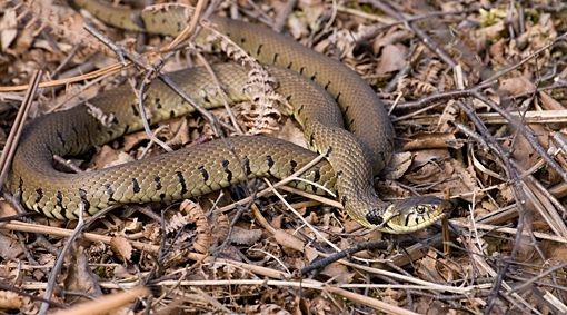 Left, Grass Snake Natrix natrix © Allan Parker ARPS and right, © Barry Wardley.