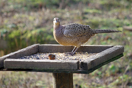 Left, Great Spotted Woodpecker and right, female Pheasant both images © Geoff Barker-Read.