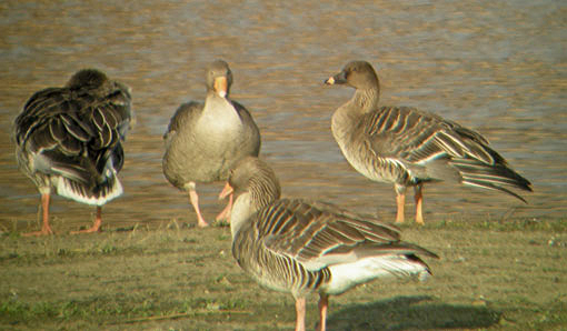 Tundra Bean Goose (right) on Huxter Well cell 1b on 10th January 2012 © Sue Bird.