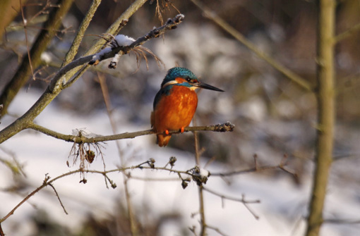 With most of the water on the Reserve frozen a male Kingfisher was again fishing on the unfrozen Mother Drain under the railway bridges.