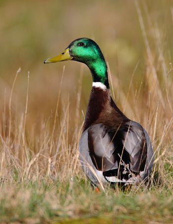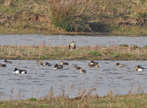 Peregrine (centre), with Shoveler and Teal nearby © Pete Greaves