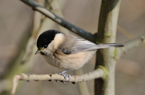 There were 4 Redshanks and 1 Snipe on Huxter Well Marsh. A Goldcrest was in Hawthorn Field and Green Woodpecker in Loversall Field. Kingfisher appeared along Mother Drain. 2 male Pheasants were in territorial dispute in front of Roger Mitchell Hide. 4 Great Spotted Woodpeckers were in territorial conflicts and drumming profusely. The 2 Wigeon on cell 1b remained. 2 Jays on Loversall Bank. Long-tailed Tits were nest building at several bramble patches (various observers). A difficult bird to photograph at Potteric Carr because it is always on the move, Willow Tit was captured in this image by Paul Morgan: