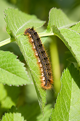 Left, Drinker Moth Euthrix potatoria male and right caterpillar, both images © Allan Parker ARPS.