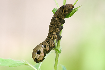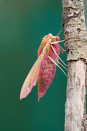 Elephant Hawkmoth Deilephila elpenor left adult moth and right caterpillar © Allan Parker ARPS.