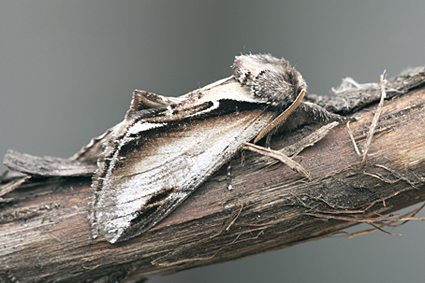 Left, Silver-Y Autographa gamma © Ken Woolley and right Gold Spot Plusia festucae © Allan Parker ARPS