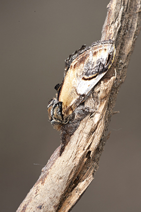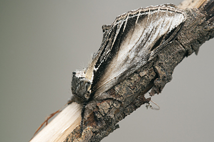 Buff-tip Moth Phalera bucephala left adult moth and right caterpillars both images © Allan Parker ARPS